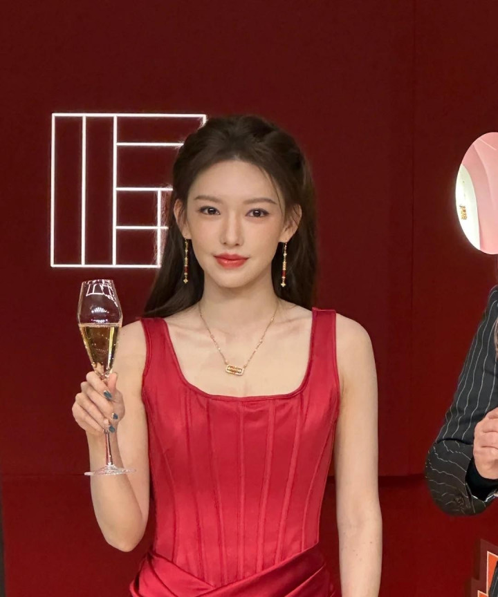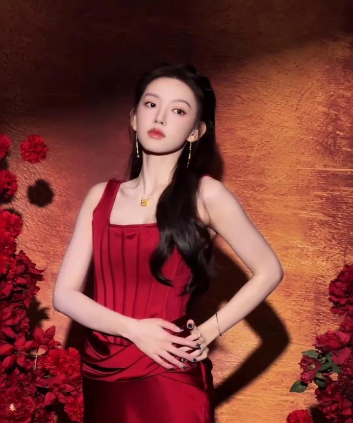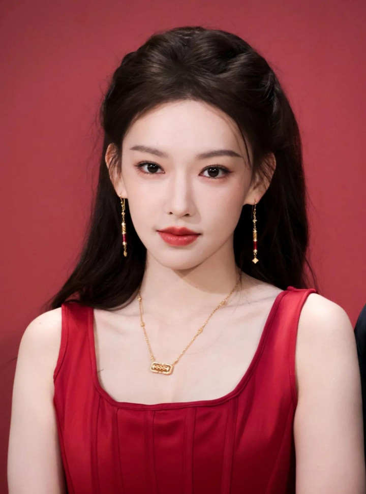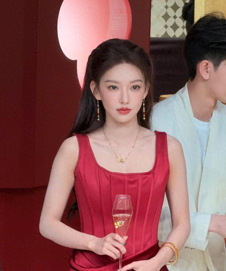 深圳那场周大福活动,连后台补妆的镜头都被路人拍糊了——可就那一秒侧脸,鼻梁的光、眼尾的弧度、红裙褶皱里透出的脖颈线条,直接把热搜词条顶到第三。不是P图,不是精修,是生图里她自己站那儿,像一枝刚剪下来还带露水的朱槿花。